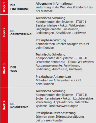 A ‘Meister’ (master) of a particular trade do not grow on trees, so we do all we can to support in gaining more qualifications. Your further development is important to us. Dive into the world of fire protection and start your career as a Fire Detection Systems and Suppression Control Specialist at Minimax. Have we 'sparked' your interest? Here, you will find further details about our training program, so that you can apply directly!