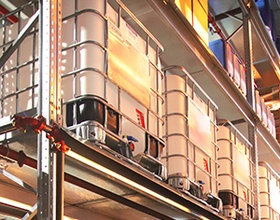The sprinklers are arranged at close intervals, both in the racks and in the aisles, facilitating early fire detection and immediate firefighting without any pre-warning period. Together with the fuel stops and the use of a special foam agent, fast, raging fires can be fought effectively – which is essential in case of flammable liquids spilling from large bulk containers.