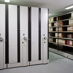 Archives house documents and information in the form of paper files or data carriers. Shelving bays or mobile storage racks make for transparent storage and as needed for quick access to specific information. The ceiling height is typically used to the limit.